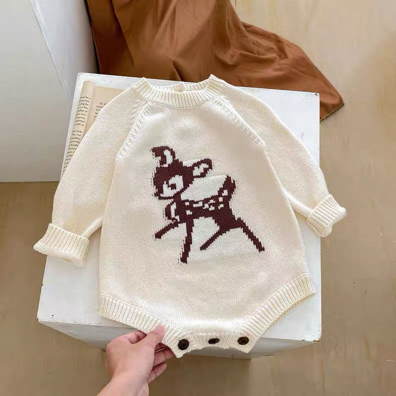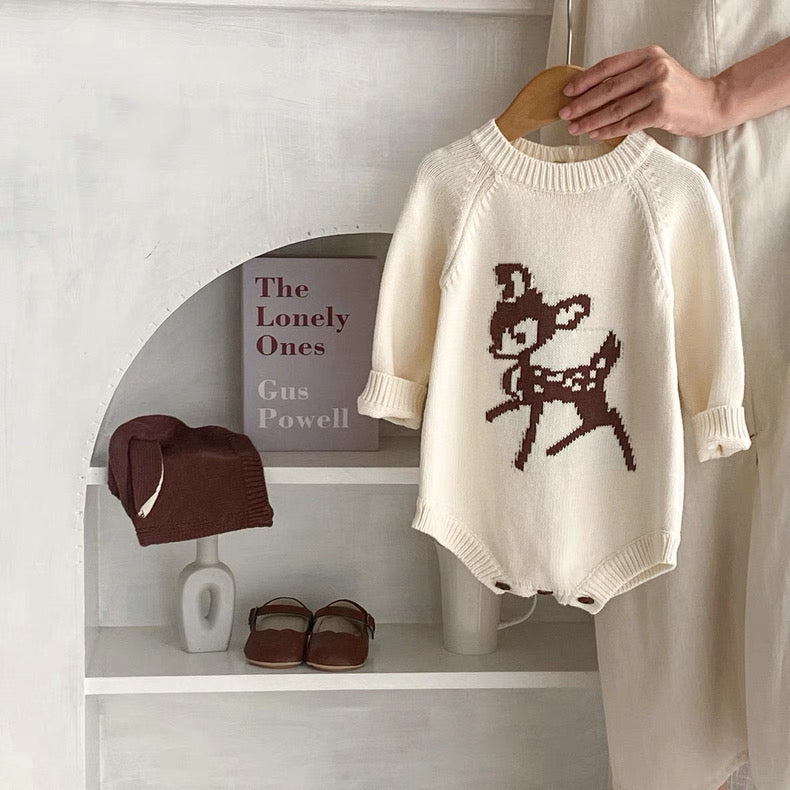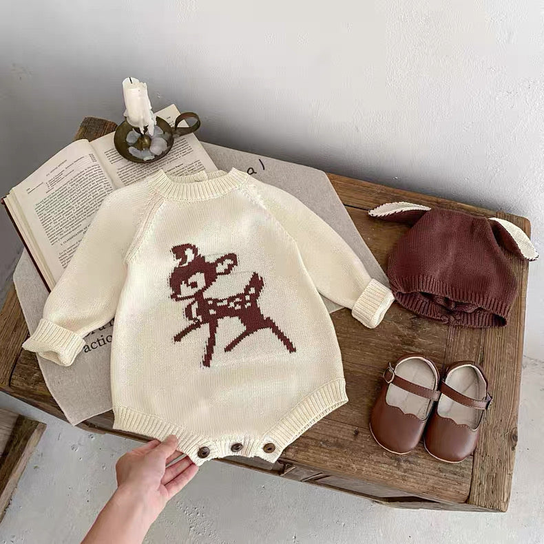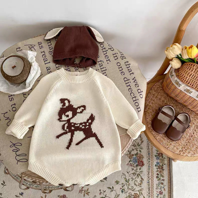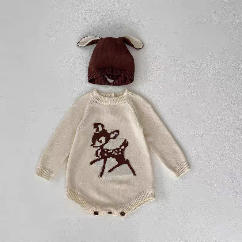 • Load image into Gallery viewer, 【予約】バンビSET ニットロンパース&帽子 長袖 ベビー 冬66~90cm Wselect