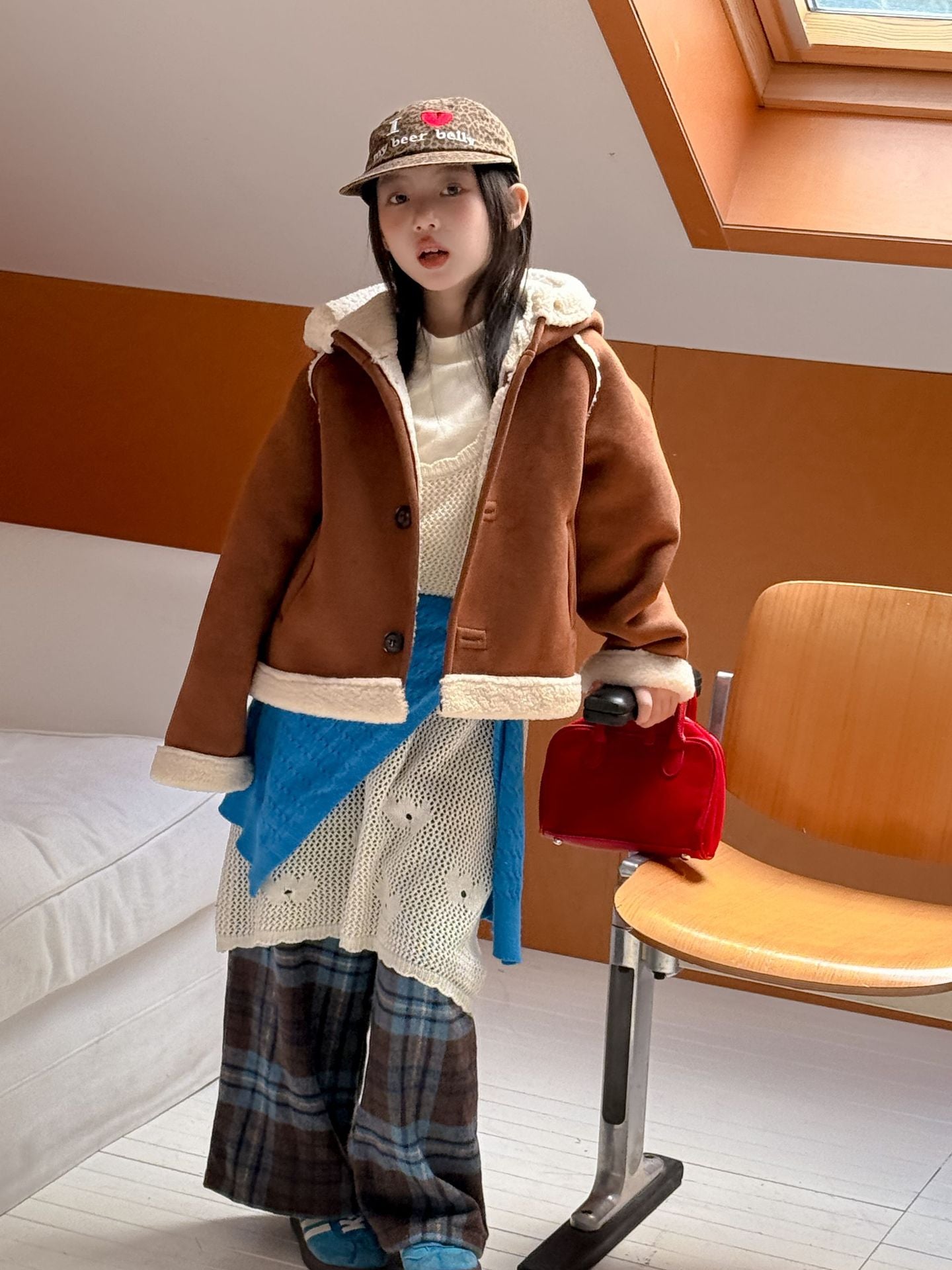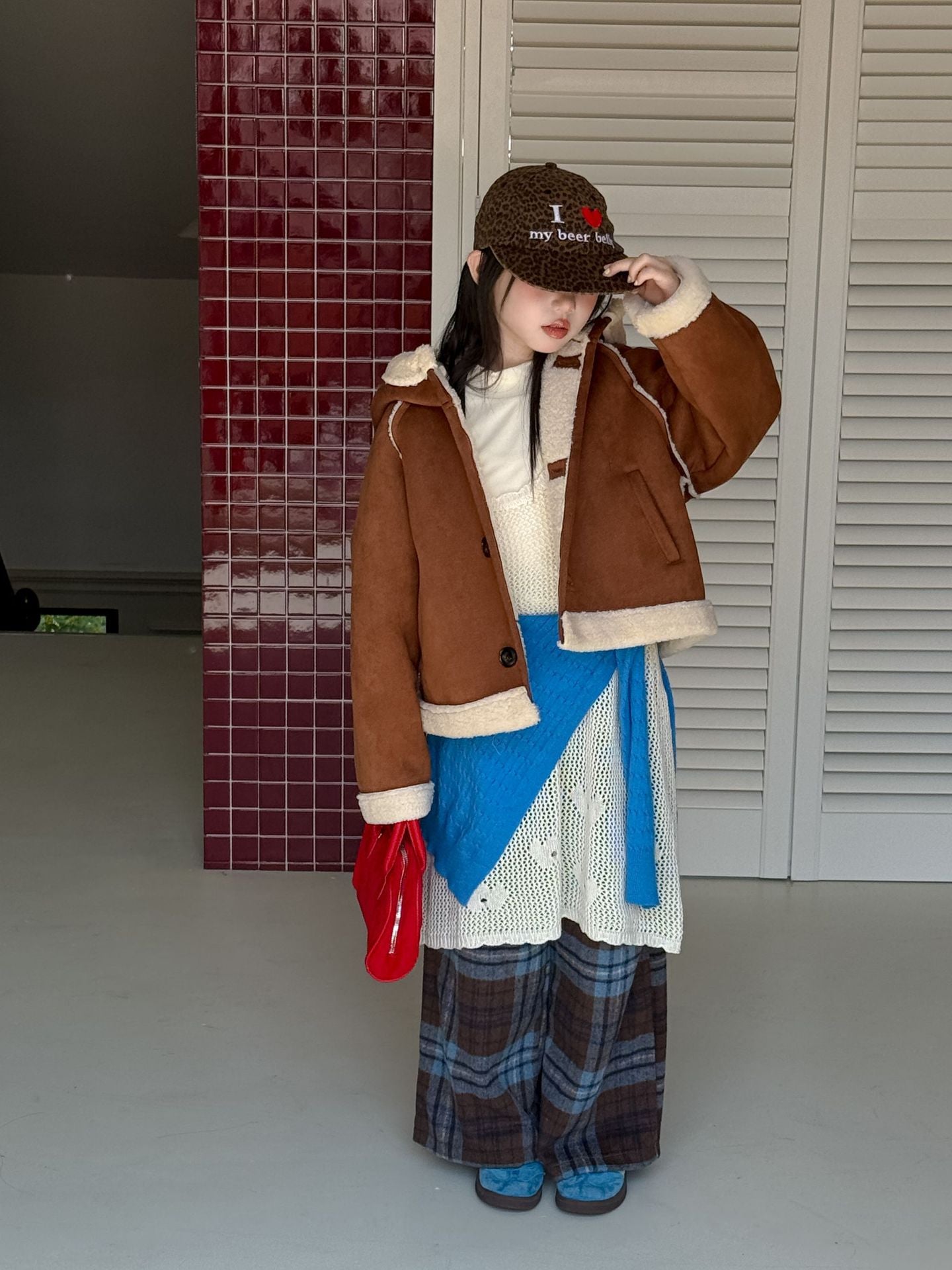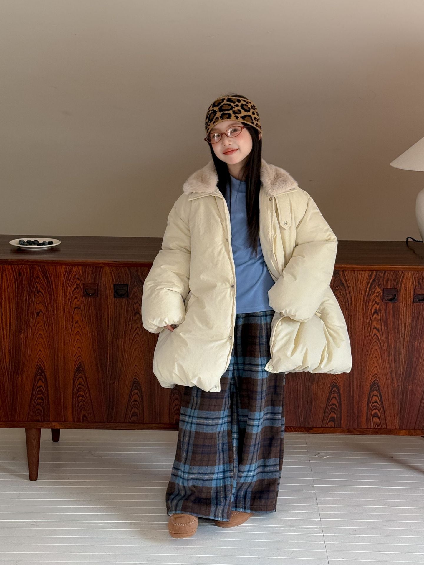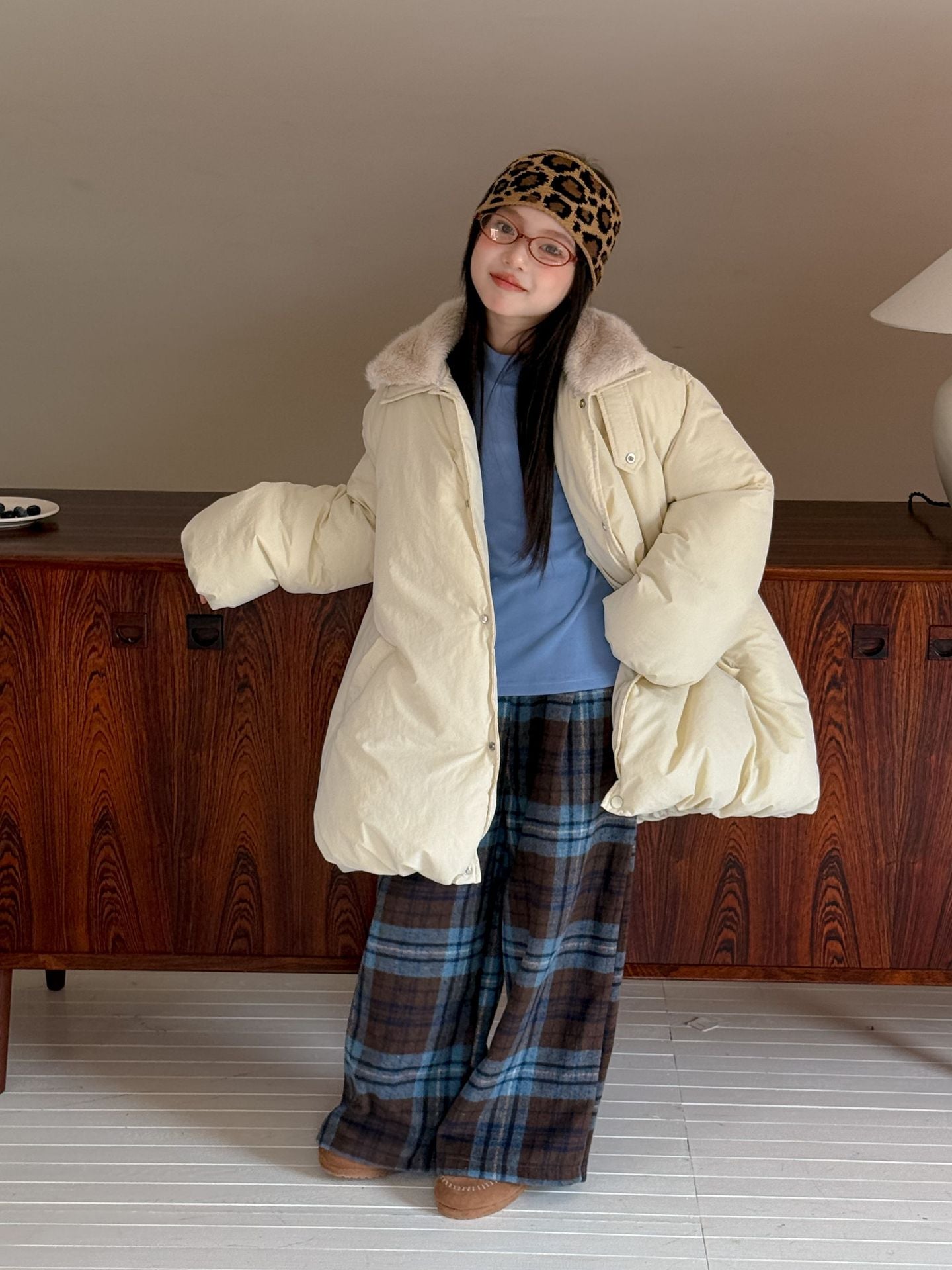 • Load image into Gallery viewer, 【予約】ブルーチェックストレートパンツ bottom ゆったり 冬100~160cm Wselect
