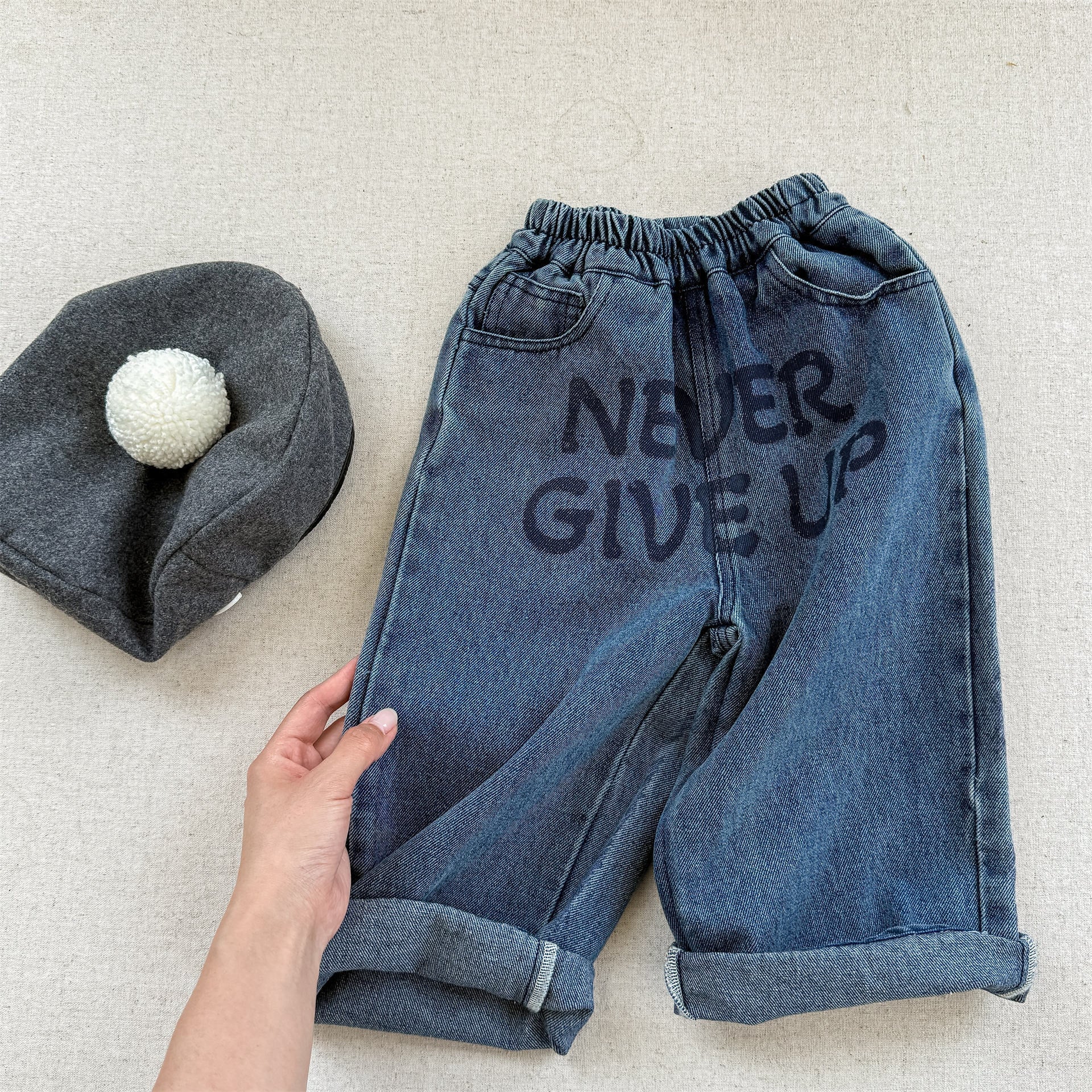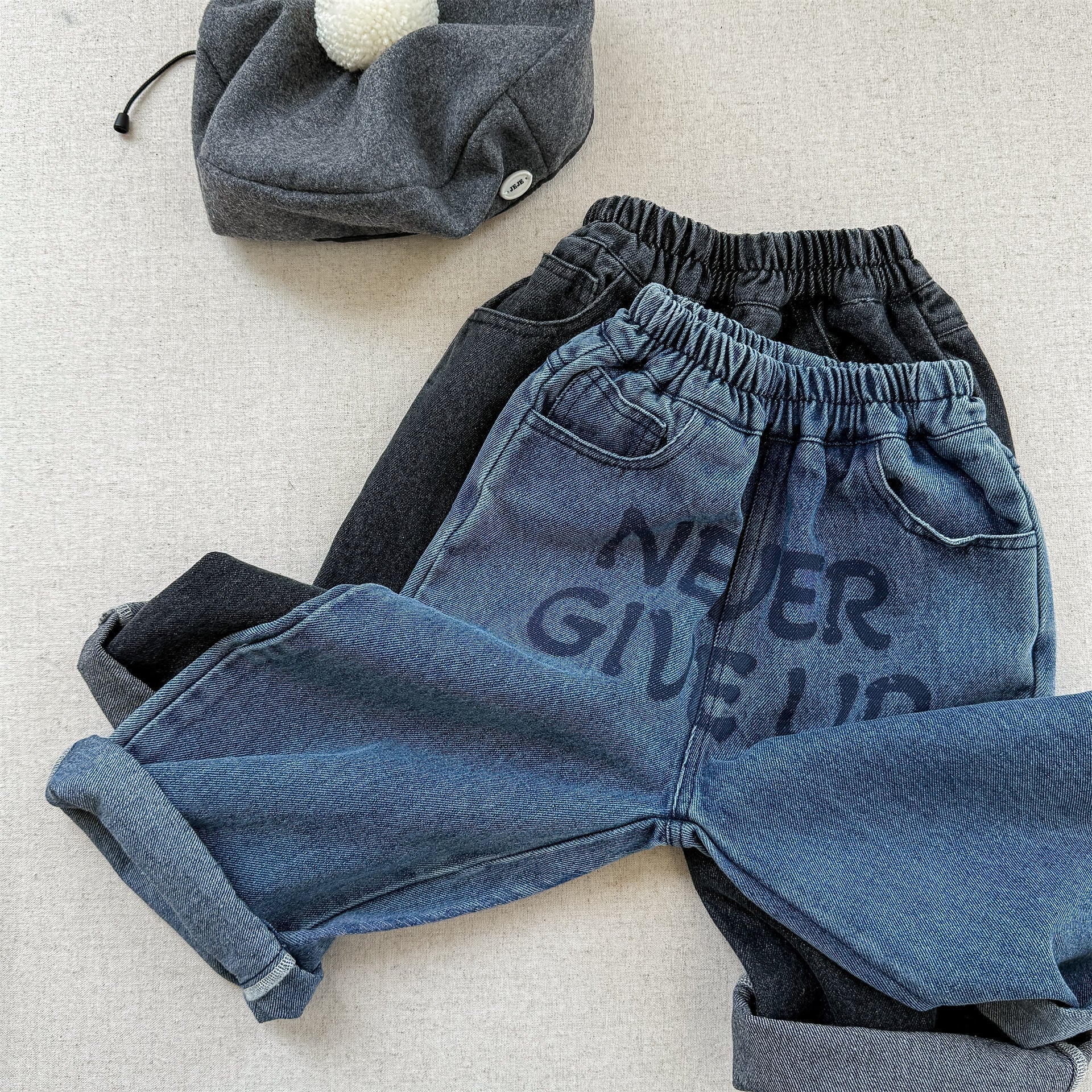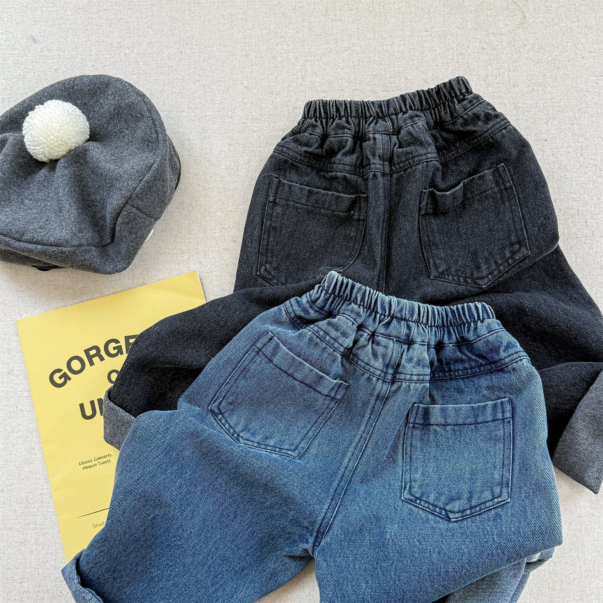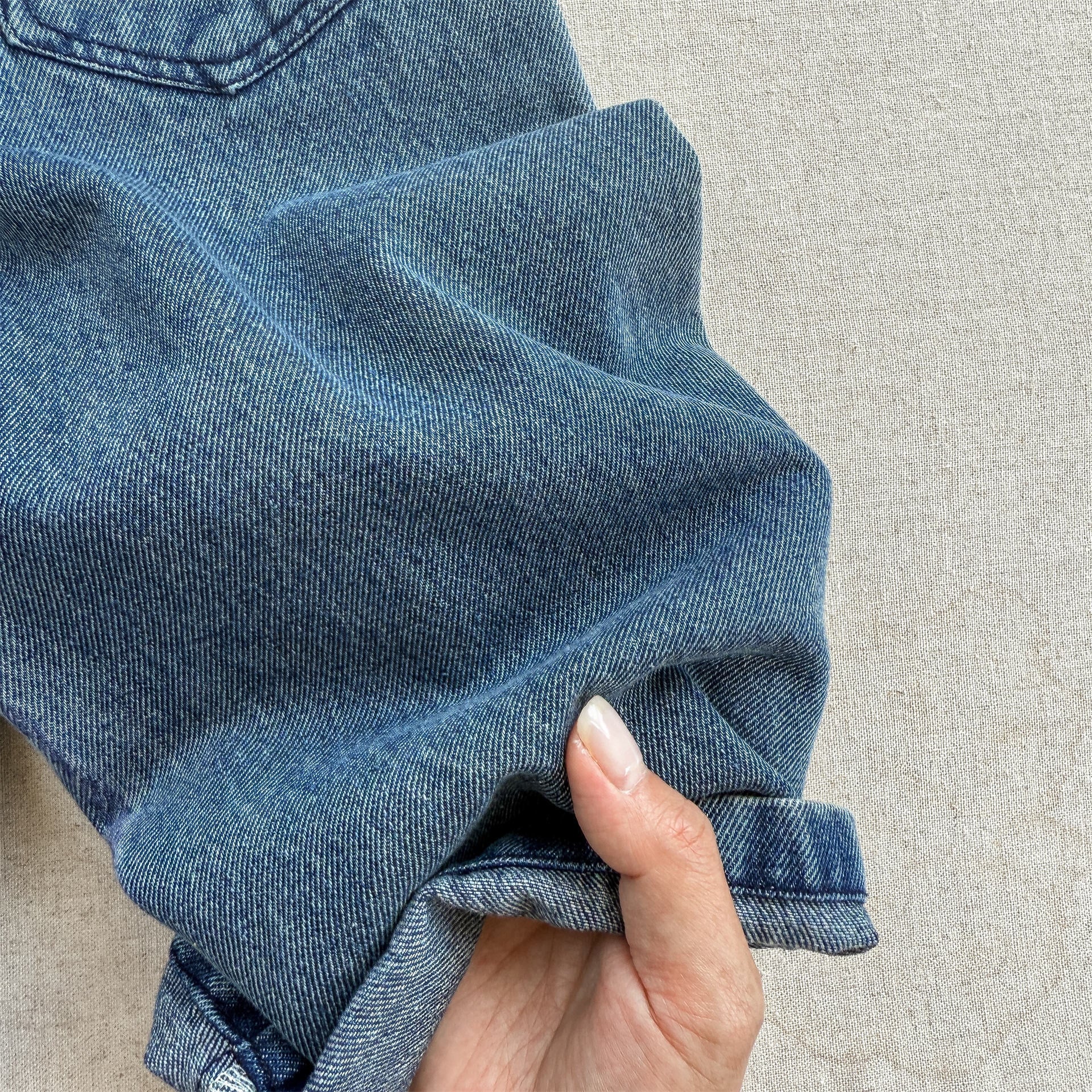 ウエストはゴムで履きやすく、デニムだけど分厚くて硬い生地ではないから、履き心地良いです。