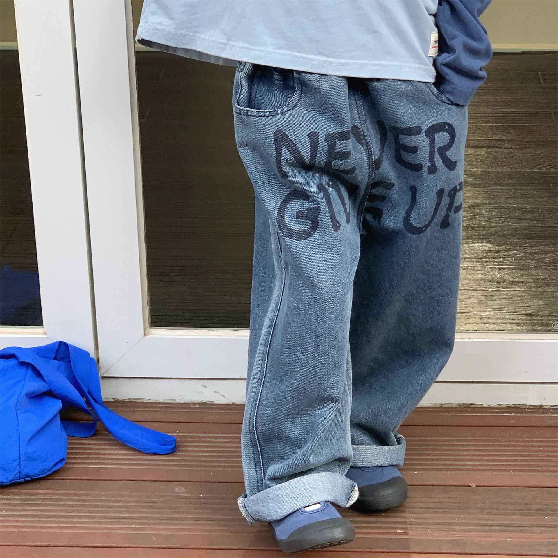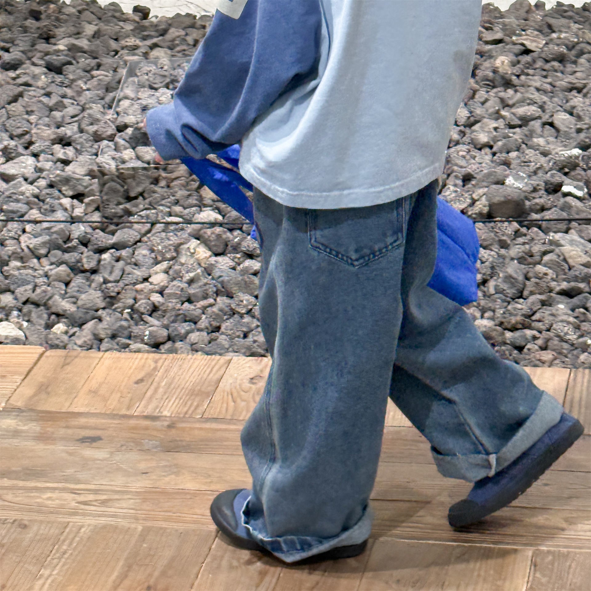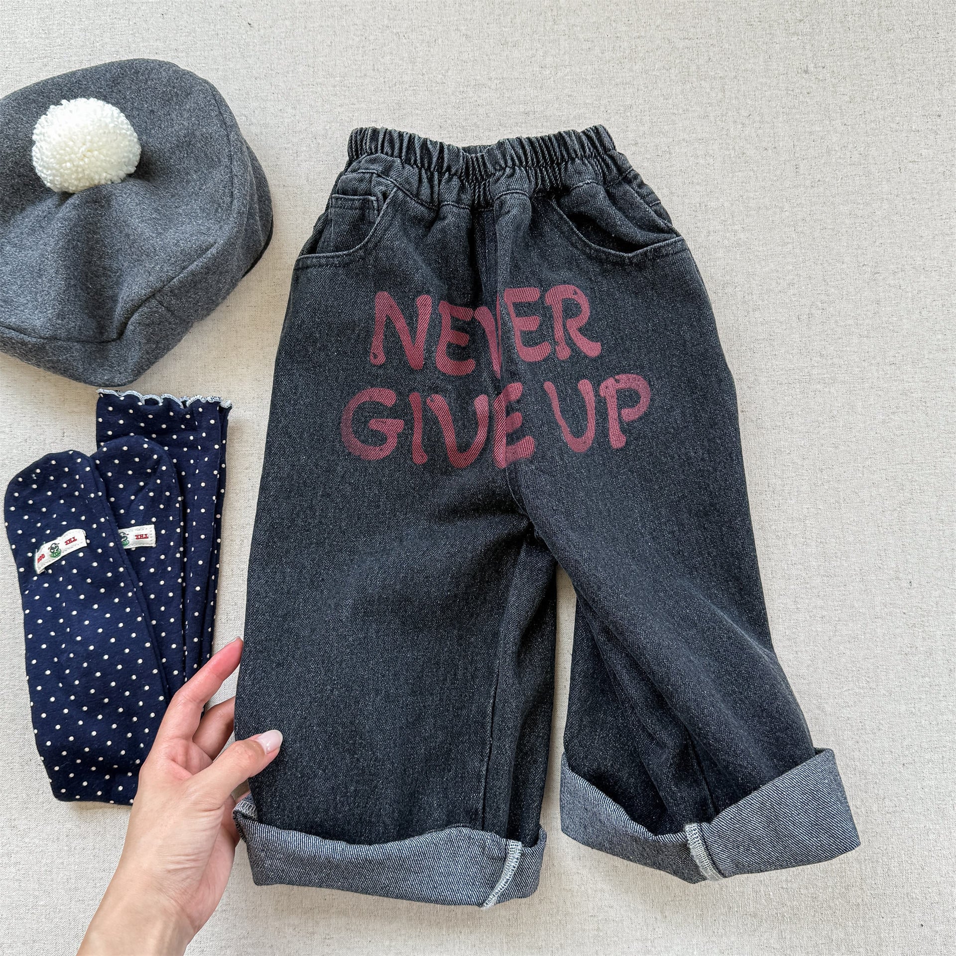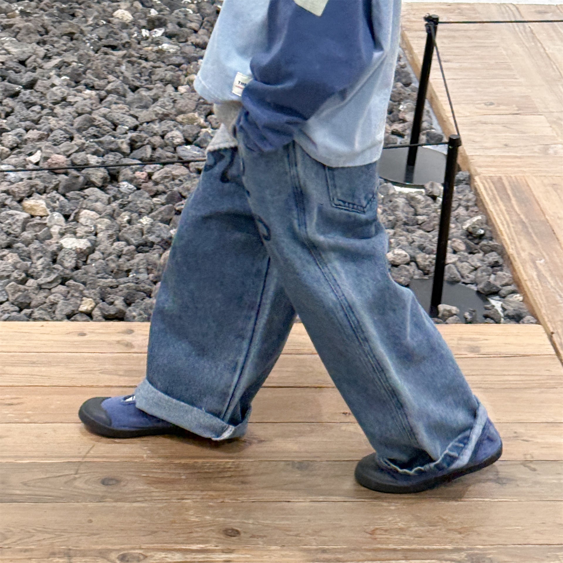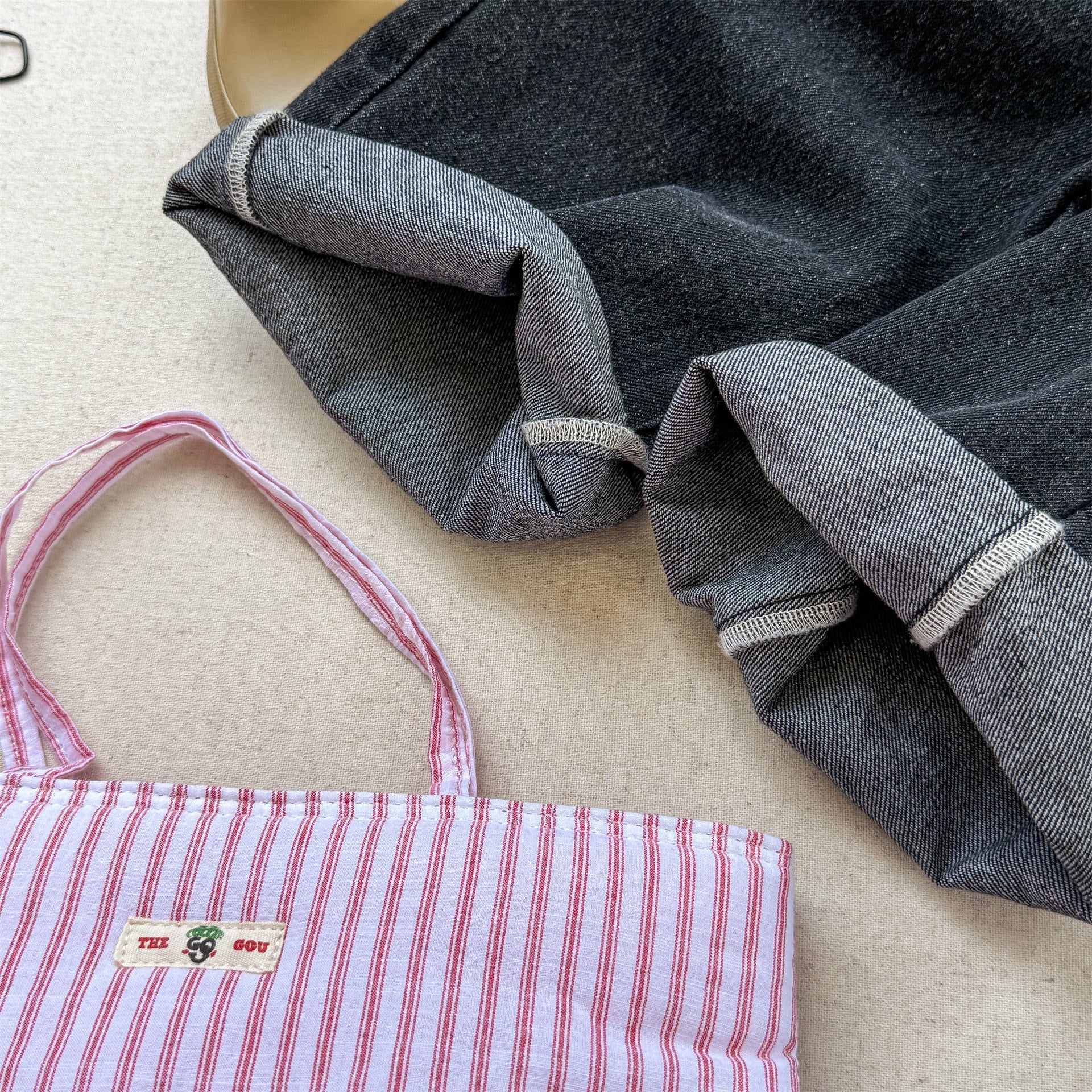 ウエストはゴムで履きやすく、デニムだけど分厚くて硬い生地ではないから、履き心地良いです。